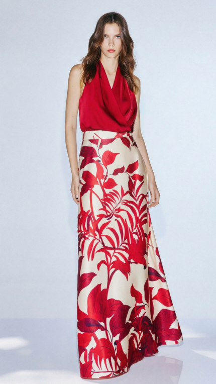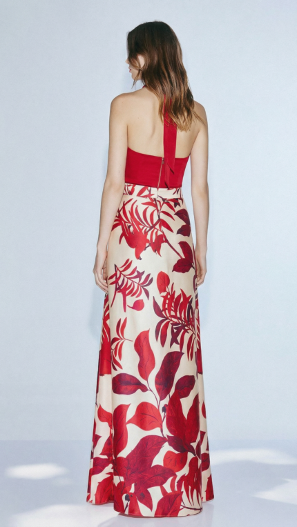 € 346,00Completo gonna e top Twins Fantasy colore bianco e rosso vino top allaccio al collo morbido tutto rosso con spalle scoperte e gonna morbida bianco e rosso