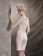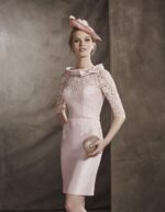 Abito tubino corto rosa chiaro st patrick collo raso cratere con fiocco sopra pizzo sotto liscio