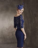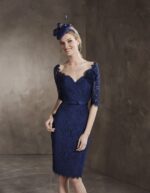 Tubino blu aderente navy st patrick interamente in pizzo con maniche a tre quarti schiena trasparente cinturino