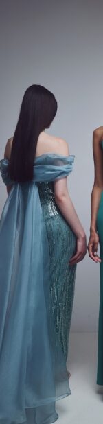 Le personalizzazioni e le modifiche non sono comprese nel prezzo dell’abito. Gli accessori indossati dalla modella vengono venduti separatamente.