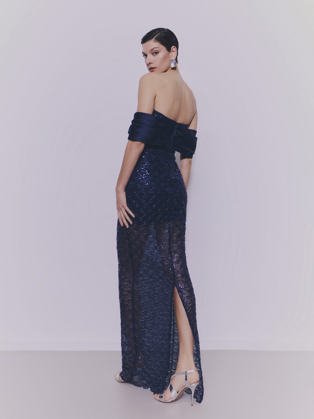 Le personalizzazioni e le modifiche non sono comprese nel prezzo dell’abito. Gli accessori indossati dalla modella vengono venduti separatamente.