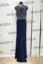 Abito blu pronovias the party edit lungo sirena scollo a V mantellina compresa decorazione cristalli tessuto crepe manica corta