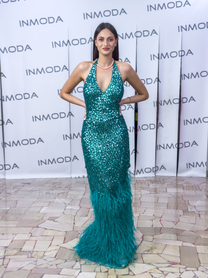 Le personalizzazioni e le modifiche non sono comprese nel prezzo dell’abito. Gli accessori indossati dalla modella vengono venduti separatamente.