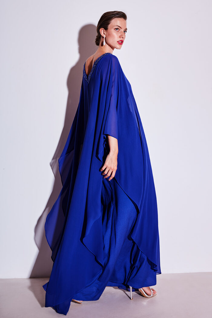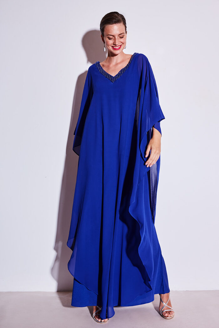 Abito lungo tunica Allure Evening blu scuro scollo a v manica lunga