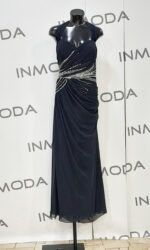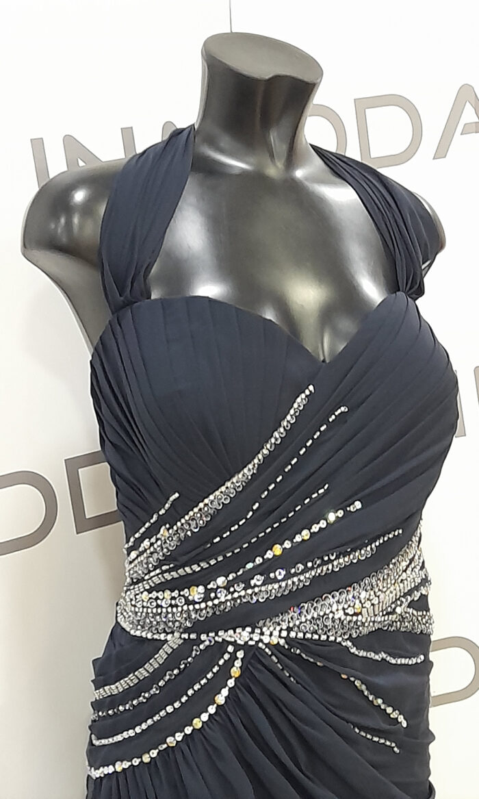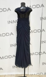Abito blu pronovias the party edit lungo sirena scollo a V mantellina compresa decorazione cristalli tessuto crepe manica corta