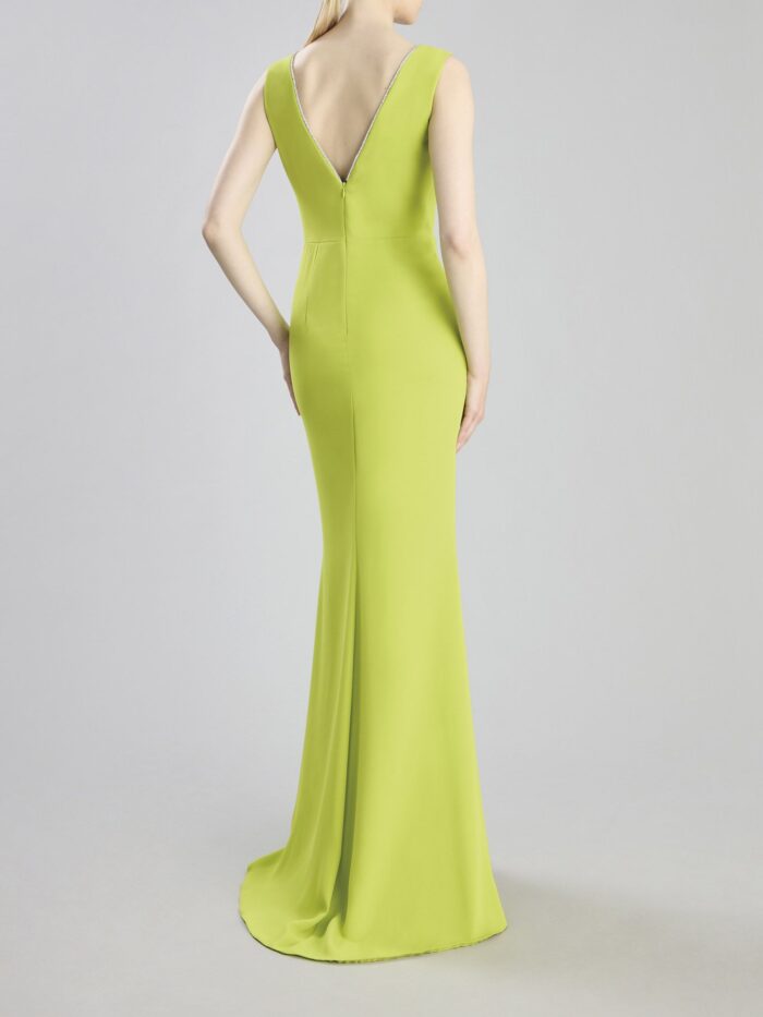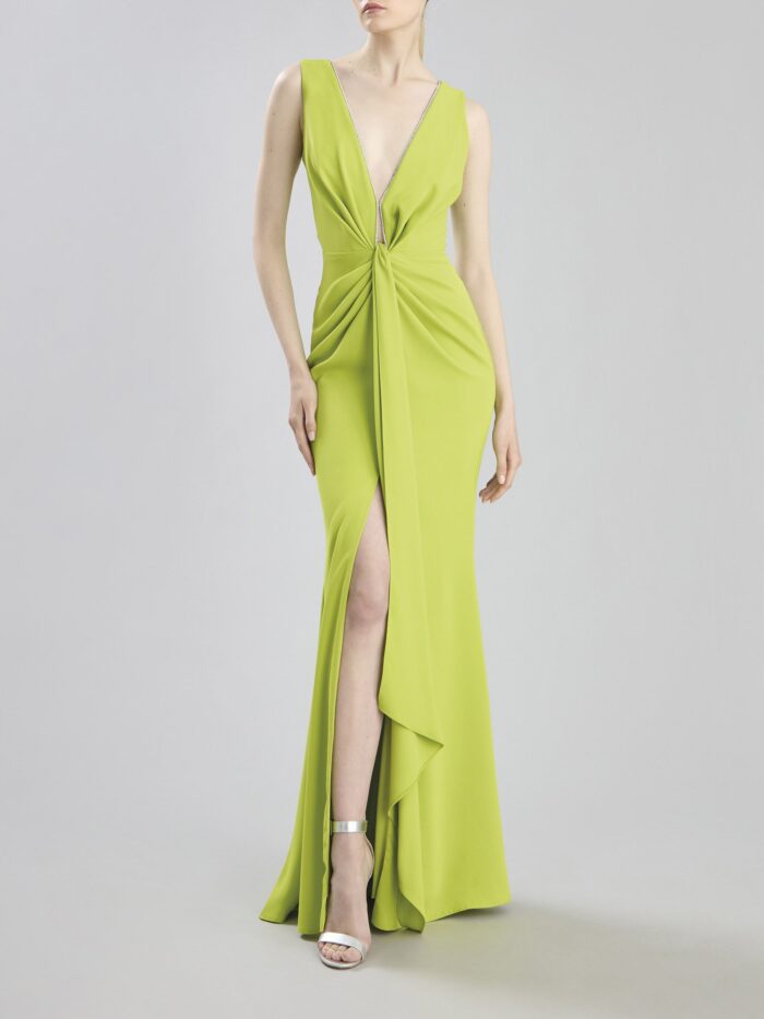 Abito Nicole Moments lime morbido con spacco con scollo profondo decorato con cristalli