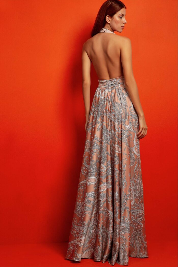 Abito rosa twins fantasy con gonna larga con stampa corpetto allaccio americano con paillette