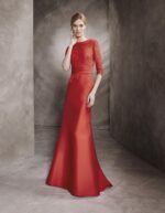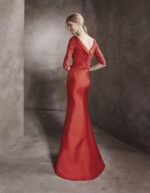Abito rosso st patrick mikado con corpetto pizzo manica tre quarti collo cratere con scollo alle spalle
