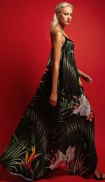 Abito verde con fantasia a fiori e piante twins fantasy morbido effetto cabane con cintura per stringere vita