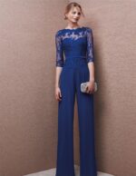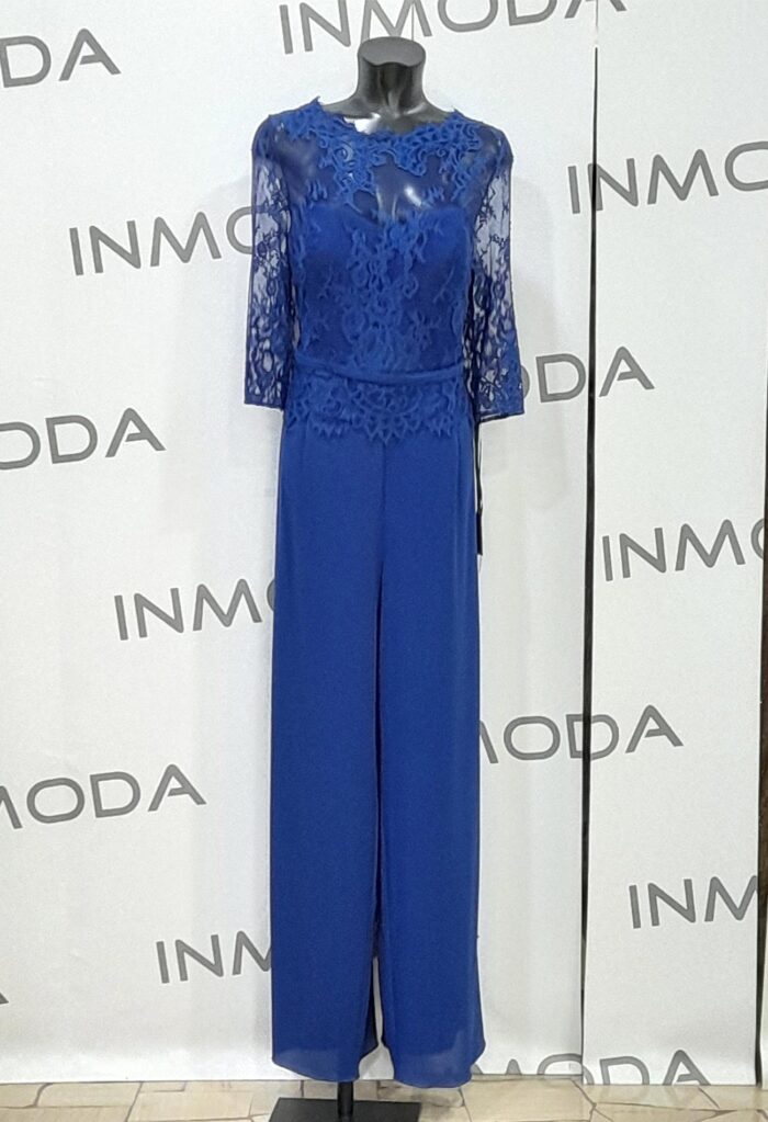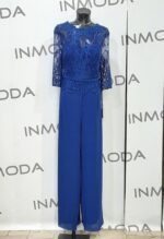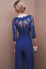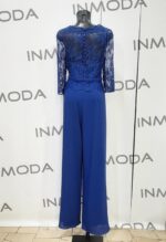 Abito st patrick tutone blu con pantalone liscio sopra corpetto pizzo avanti e dietro con manica a tre quarti