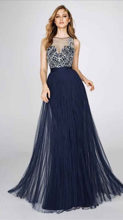 Abito blu st patrick gonna in tulle molto ampia corpetto in pizzo più chiaro