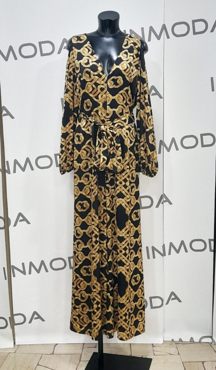 Tutone abito twins con maniche lunghe ma a spalle aperte e cintura nei colori nero oro e bianco oro