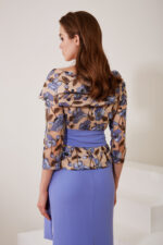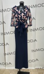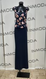 Completo 3 pezzi gonnellone canotta e giacca maestri colore blu a fiori rosa giacca con chiusura kimono