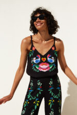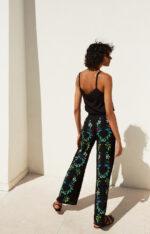 Completo due pezzi nero fantasia twins fantasy pantalone e canotta decorati pantalone largo