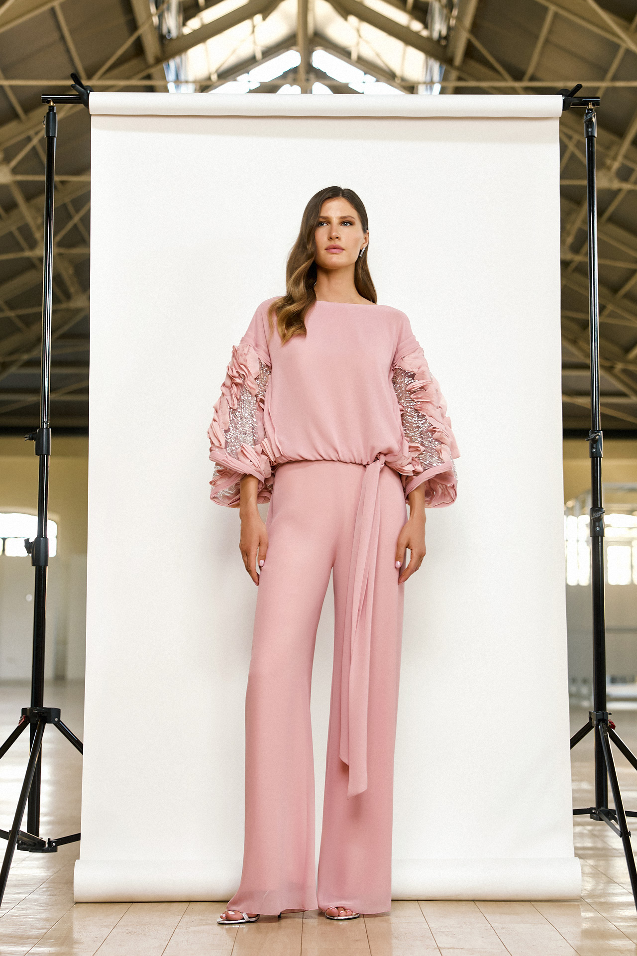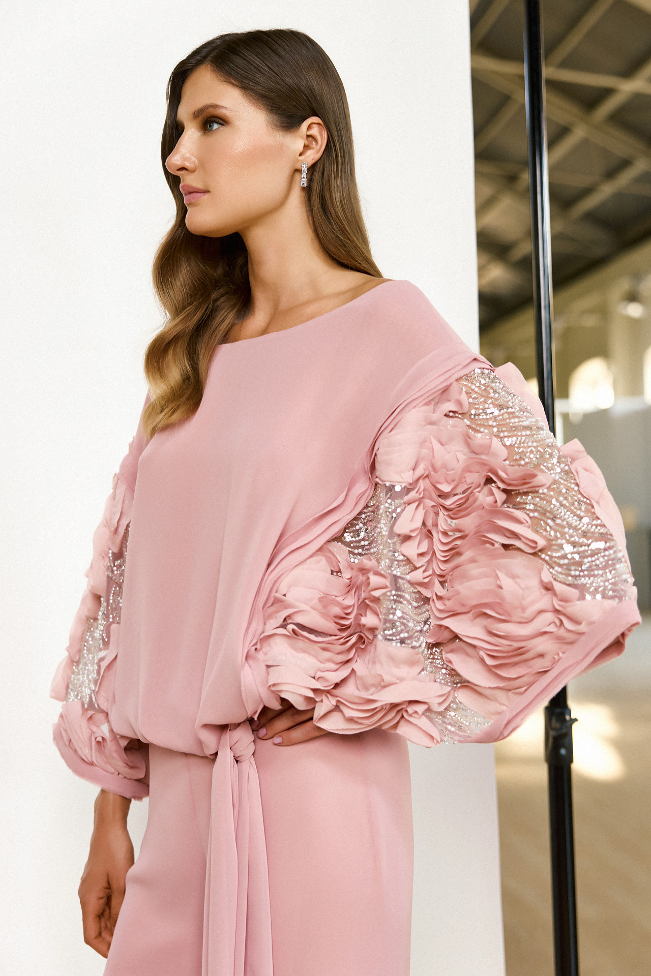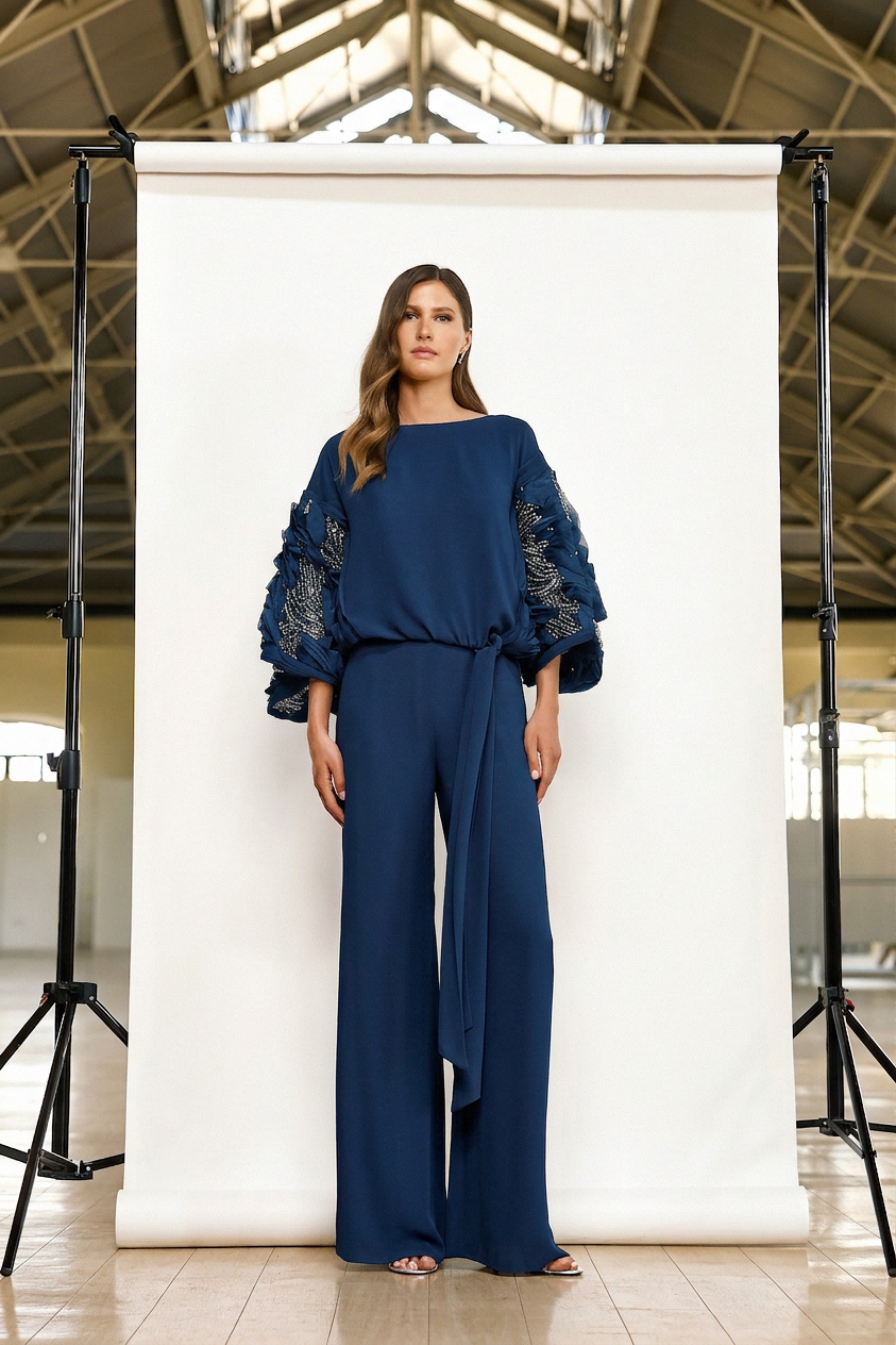 Le personalizzazioni e le modifiche non sono comprese nel prezzo dell’abito. Gli accessori indossati dalla modella vengono venduti separatamente.