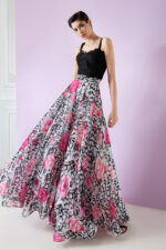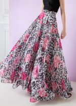 Gonna a fiori morbida e larga bianca con fiori neri e rosa fantasia allure evening
