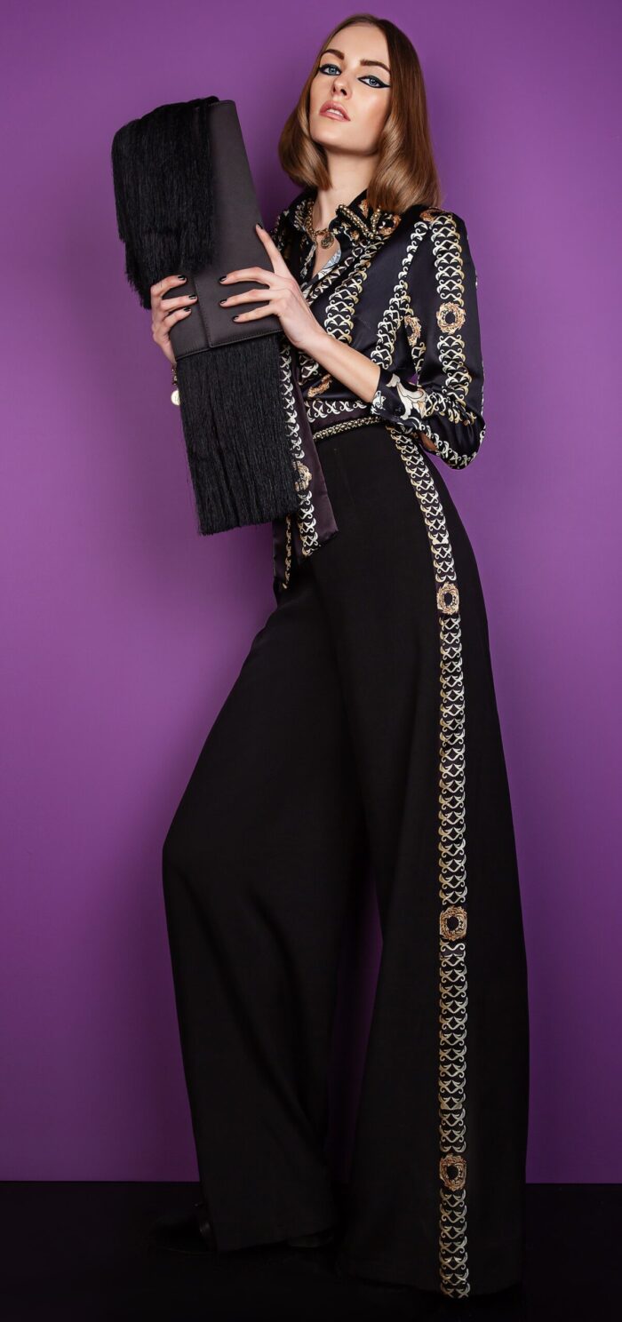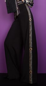 Pantalone twins fantasy con fascia laterale stampata nero con gamba a palazzo elegante