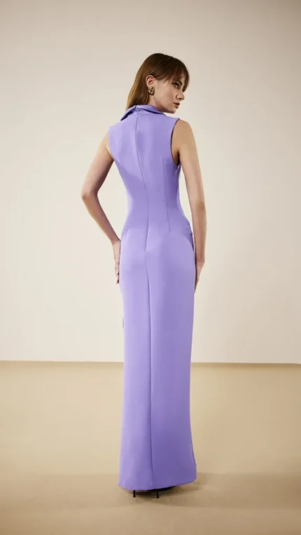 Abito cerimonia Elisabetta Franchi for Pronovias dritto in crepe senza maniche con scollo rotondo petto a lancia e senza maniche in crepe viola