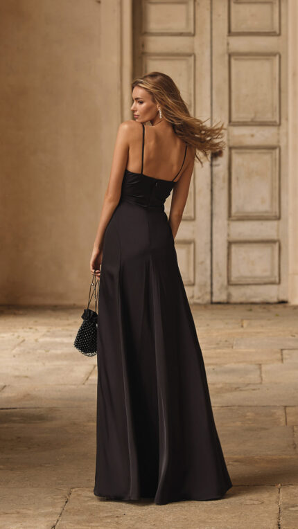 Abito Nicole Moments elegante morbido nero con doppia spallina scollo profondo satin