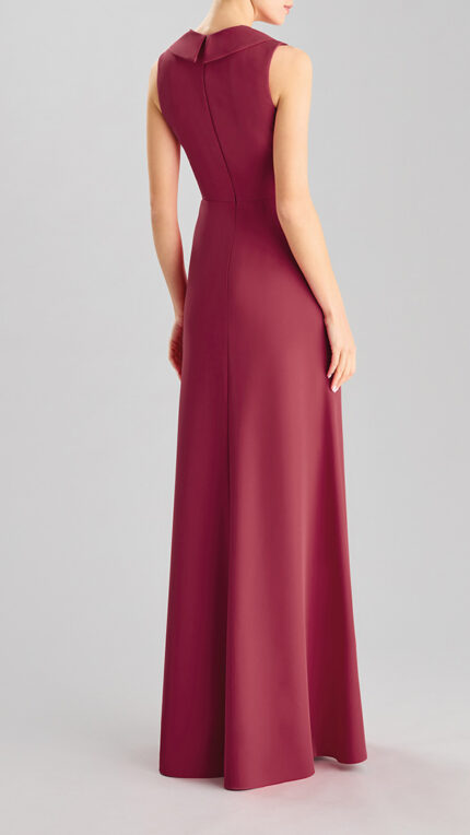 Abito morbido Pronovias The Party Edit bordeaux con gioiello in vita e collo stile smoking