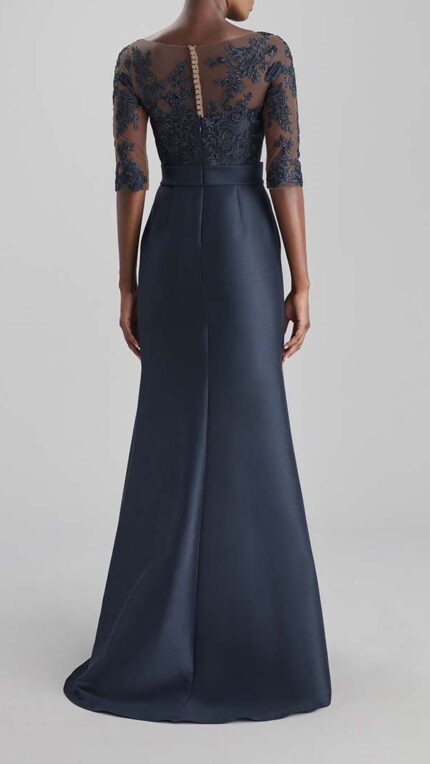 Abito Pronovias The Party edit mikado e corpetto trasparente in pizzo con taglio a sirena