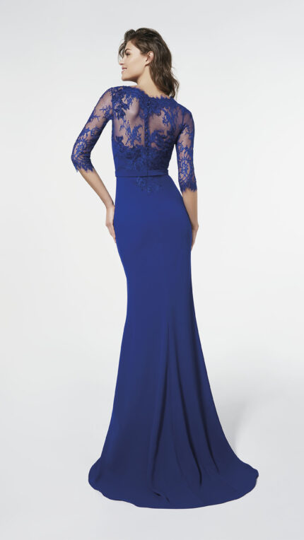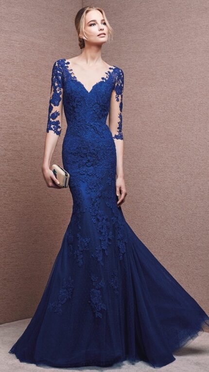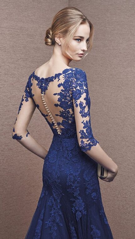 Abito pizzo e tulle st patrick modello sirena con pizzo trasparente blu