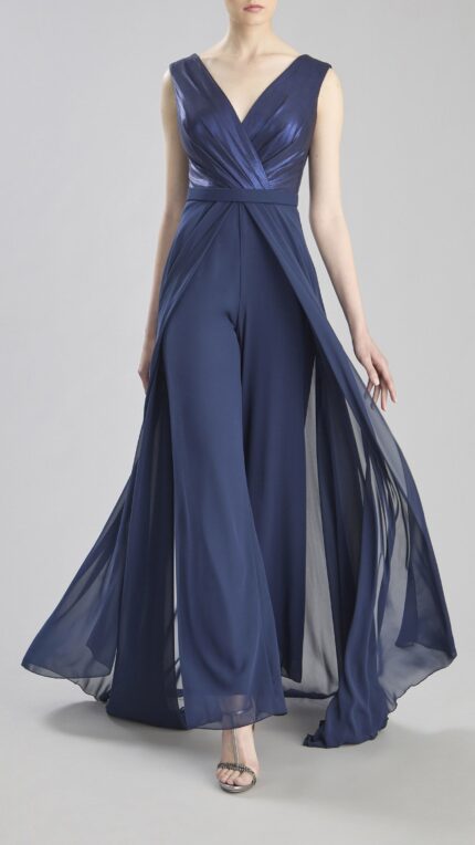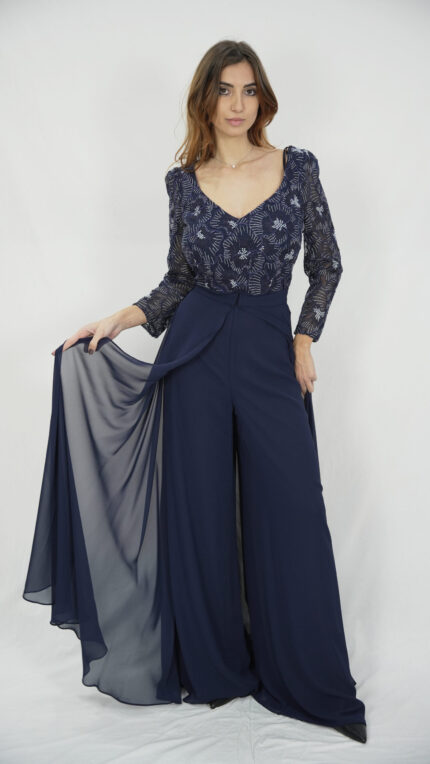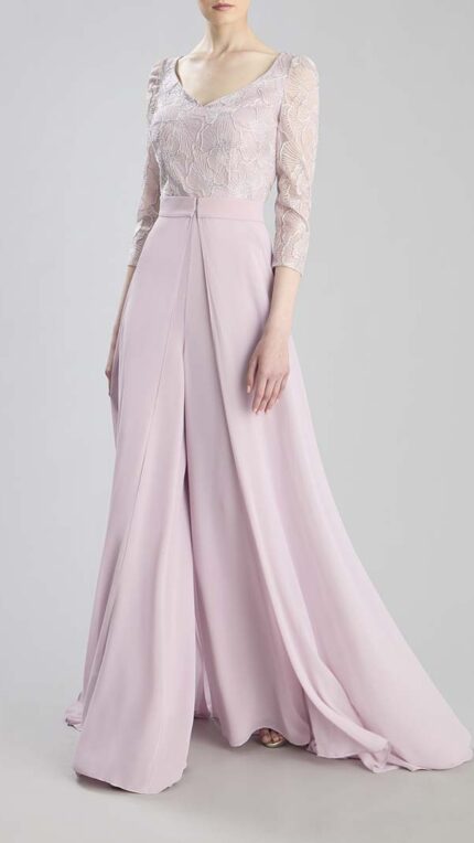 Abito tutone rosa e blu Nicole Moments pantalone e pannello rimovibile in chiffon e corpetto decorato manica 3/4