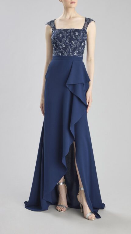 Abito spezzato Nicole Moments corpetto decorato a disegno spallina larga e gonna crepe morbida con spacco