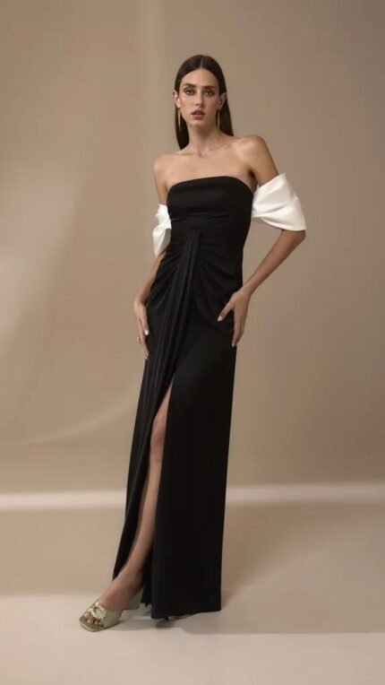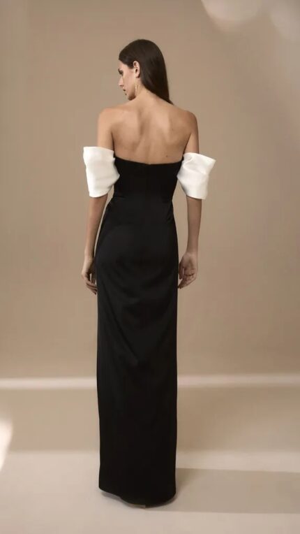 Abito nero e bianco Nicole Moments completamente scollato a sirena tutto nero con maniche bianche e spacco davanti