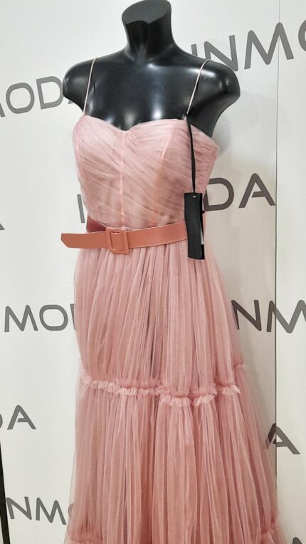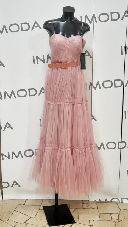 Abito inmoda in tre colorazioni rosa, blu e verde in tulle morbido con balze e cintura inclusa